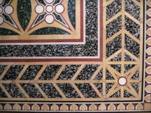 De foto van Geometria is trouwens genomen in de "Tesoro" van de Sint Pieter - een soort museumpje (waarvoor je dus wel moet betalen), waar allerlei gouden kostbaarheden en ander mooi spul te zien is, en waar alle toeristen (foutief!) denken de Sixtijnse Kapel te kunnen vinden, die in de Vaticaanse Musea ligt, achter de Sint Pieter. Wel ligt daar dus de tombe van Sixtus IV, een wondermooi beeld van een engel door Bernini (met levensechte gelaatsuitdrukking, echt heel knap gedaan), enkele oude gebedenboeken en gewaden van pausen. Er mag niet gefotografeerd worden, maar voor die foto heb ik toestemming gekregen van de suppoost (die ik in mijn beste Italiaans heb aangesproken). Overigens heb ik minstens 3 andere gasten ongevraagd zien filmen en/of fotograferen.